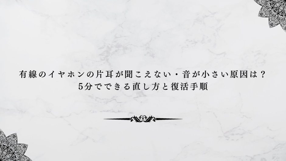 お気に入りの音楽や動画を楽しもうとした瞬間、イヤホンの片耳だけ音が聞こえないことに気づくと、とても焦ってしまうものです。完全に壊れてしまったのか、それとも一時的な接触不良なのか、すぐには判断がつかないことも多いでしょう。有線イヤホンの場合、もっとも疑われる断線だけでなく、プラグの汚れや挿し込み不足、端末側の設定など、意外な原因で聞こえなくなっているケースも少なくありません。